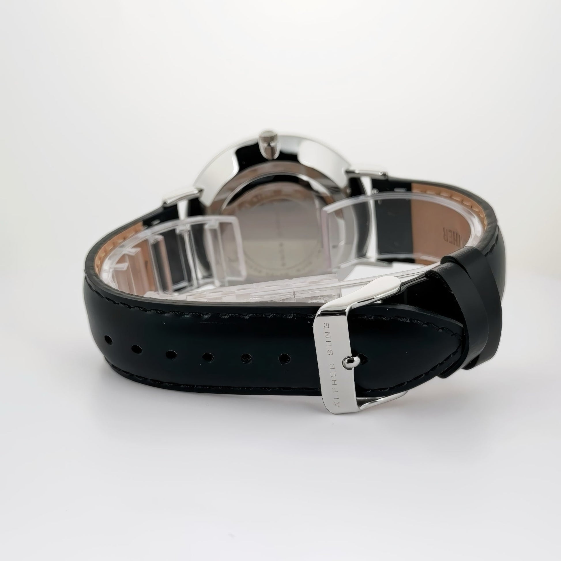 Alfred Sung Metropolitan Date Black Dial Silver Case Leather strap watch