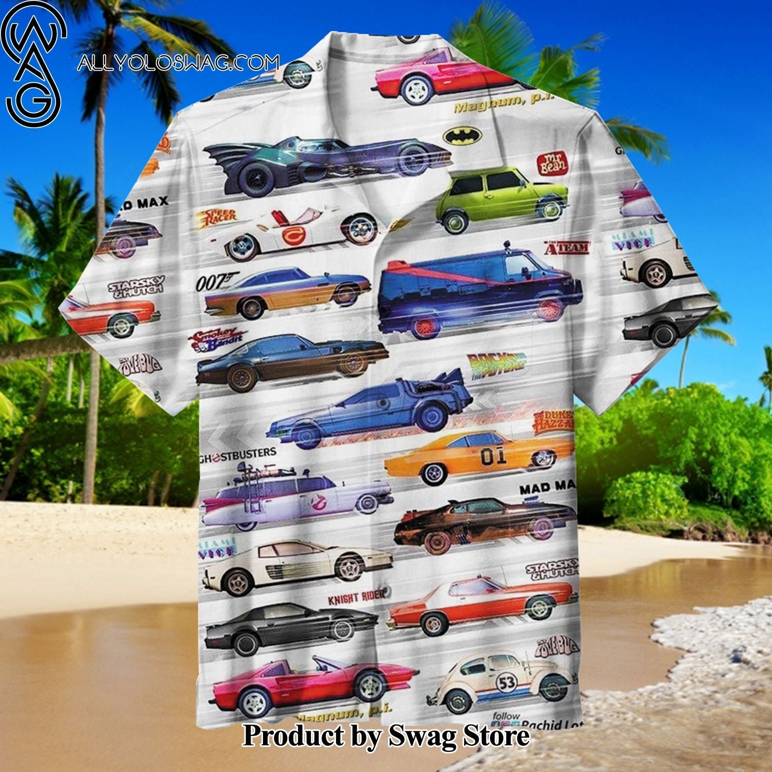 Classic characters and their cars Relaxed Fit Hawaiian Shirt