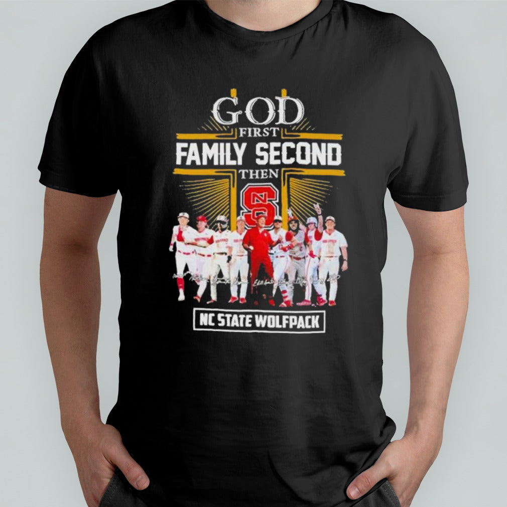 CWS 2024 God First Family Second Then NC State Wolfpack Baseball Signatures Shirt