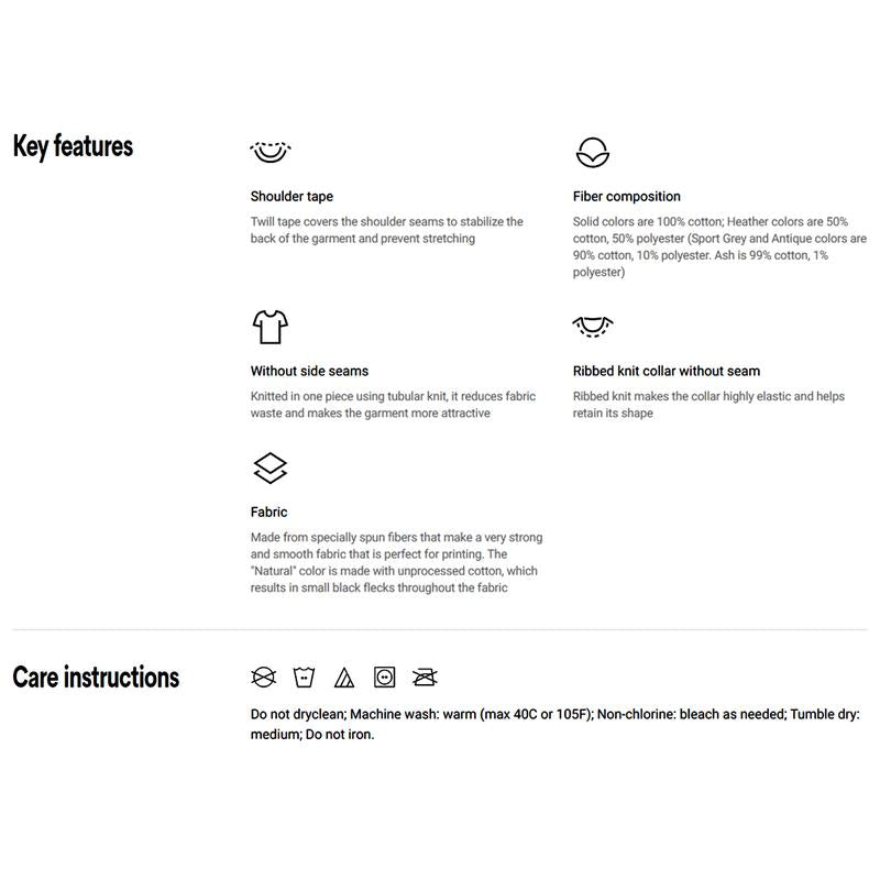 - T-Shirts: 100% cotton – soft, breathable, and durable.