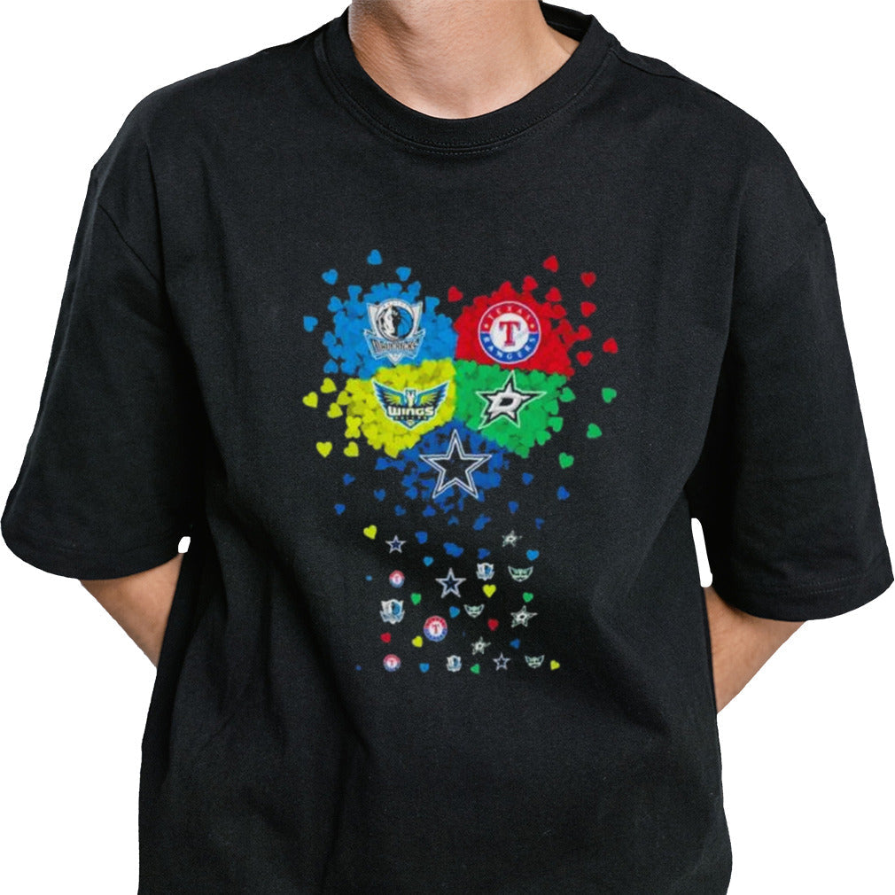 Heart Texas Sports Teams Mavericks, Rangers Dallas Wings Stars And Cowboys Shirt