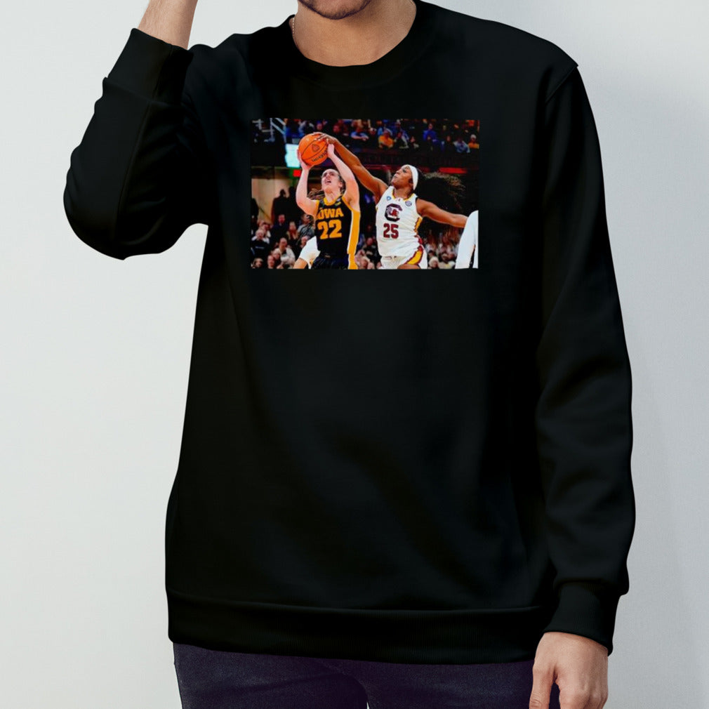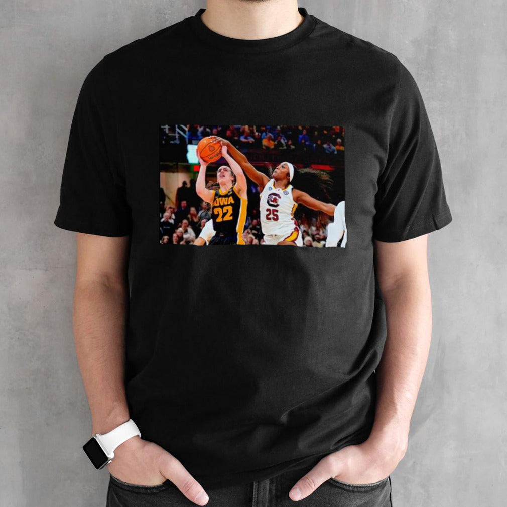 Johnson blocks a shot by Iowa guard Caitlin Clark shirts