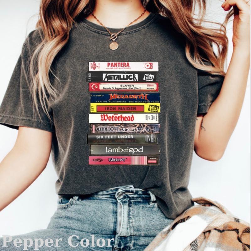 Vintage Lamb of God Metallica Graphic Tee - Metal Cassette Tapes Stack T-Shirt for Men - Top, Menswear