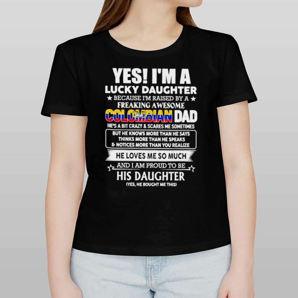 Yes, I’m Lucky Daughter Because I’m Raised By A Freaking Awesome Colombian Dad He Loves Me So Much His Daughter shirt